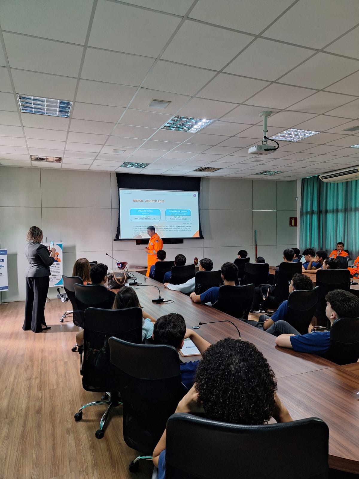 Na quinta-feira (25), os debates começaram com uma temática atual e desafiadora: os riscos e cuidados em emergências envolvendo veículos eletrificados, apresentados pelos 1º Tenentes André Felipe e Amaral.